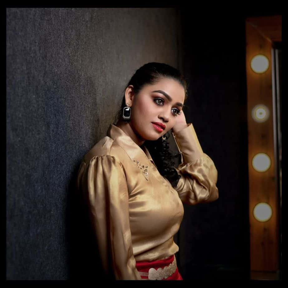 தற்போது சமூக வலைத்தளங்களில் மாடர்ன் மயிலாக வலம் வரும் இவர், தங்க நிறத்தில் ஜொலிக்கும் டைட்டான உடையில் தன்னுடைய முன்னழகு எடுப்பாக தெரியும் அளவுக்கு போஸ் கொடுத்து ரசிகர்களின் சூட்டை கிளப்பி விட்டுள்ளார். இதனை பார்த்த ரசிகர்கள், “புளி மாங்காய் புளிப்..” என்று வர்ணித்து வருகிறார்கள்.