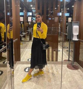 சமீபத்தில் இவர் நடித்து வெளியான மலையாள படம் ‘மாமாங்கம்’. இதில் நடிகர் மம்முட்டியுடன் முக்கிய கதாபாத்திரத்தில் இணைந்து நடித்து ரசிகர்களை மிரள வைத்துள்ளார். தற்போது மாடர்ன் உடையில், கியூட் ஆகா போஸ் கொடுத்து புகைப்படம் ஒன்றை தனது இன்ஸ்டாகிராம் பக்கத்தில் வெளியிட்டுள்ளார். இதனை பார்த்த ரசிகர்கள் ” modern -ன் dress -ல் ஒரு மஞ்ச காட்டு மைனா ” என்று அழகை வர்ணித்து சிம்மெண்ட் செய்து வருகின்றனர் .