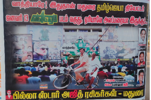 “வாத்தியாரே.. இதுதான் மதுரை தமிழ்ஜெயா தியேட்டர், ஜனவரி 13 வலிமை படம் வருது, ஏரியாவே அலப்பறையா இருக்கும்” என அதில் குறிப்பிட்டு இருக்கின்றனர்.