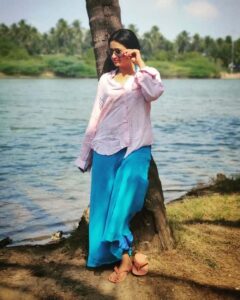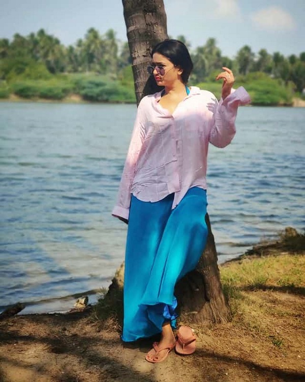 அடிக்கடி தன்னுடைய அழகுகளை தெரியுமாறு போட்டோக்களை வெளியிட்டு வருகிறார். அந்த வகையில், தற்போது, தென்னை மரத்தின் மீது சாய்ந்து இருக்கும் புகைப்படத்தினை பதிவிட்டுள்ளார். அதனை பார்த்த ரசிகர்கள் இவ்வளவு ஓப்பனா இருக்குற இடத்துல நிக்காதீங்க பசங்க பார்த்த சும்மா இருக்க மாட்டானுங்க என நெட்டிசன்கள் கமெண்ட் செய்து வருகின்றனர்.