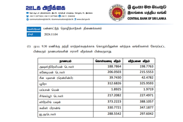 மேலும் இலங்கை மத்திய வங்கியினால் வெளியிடப்பட்டுள்ள இன்றைய நாணய மாற்று விகிதங்கள் பின்வருமாறு,