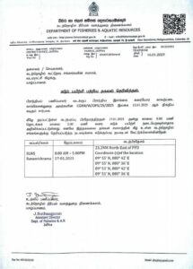 இலங்கை கரையோர காவற்படையின் வடக்கு பிராந்திய பணிப்பாளர் யாழ்ப்பாணம் நீரியல்வளத் திணைக்களம் ஊடாக அனைத்து கடற்தொழில் சங்கங்களுக்கும் இந்த அறிவித்தலை விடுத்துள்ளார்
