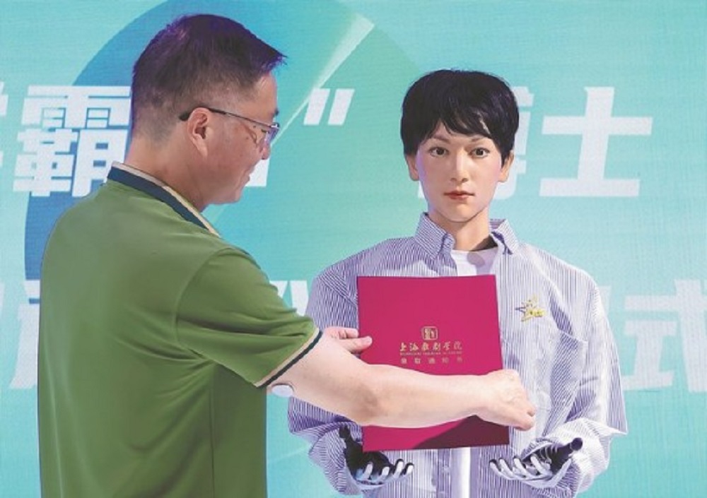 இந்த நிலையில் சீனாவின் ஷாங்காய் தியேட்டர் அகாடமியில், மனித உருவிலான ரோபோ ஒன்று, அந்த நாட்டின் பாரம்பரிய நாட்டியம் மற்றும் நாடகத் துறையில் கலாநிதி பட்டம் பெறுவதற்காக அனுமதிக்கப்பட்டுள்ளது.