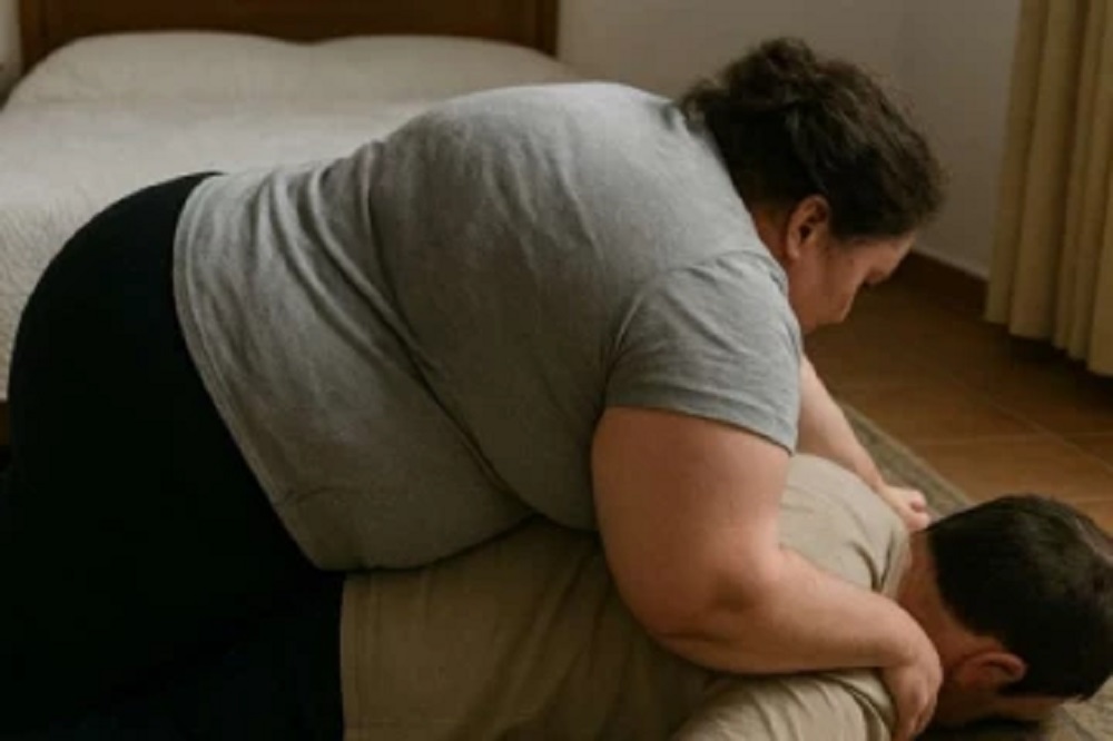 60 வயதான மனைவி மனைவி படுக்கையில் இருந்து எழுந்தபோது , தரையில் படுத்திருந்த தனது கணவர் மீது கால் தடுமாறி விழுந்தார். படுக்கைக்கும் சுவருக்கும் இடையில் சிக்கியதால், அவரால் தனியாக எழுந்திருக்க முடியவில்லை, உதவிக்காக கூச்சலிட்டார்.