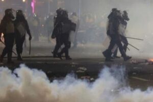 போராட்டத்தைக் கட்டுப்படுத்த பொலிஸார் கண்ணீர் புகை குண்டுகளை வீசியுள்ளதாக தெரிவிக்கப்பட்டுள்ளது.