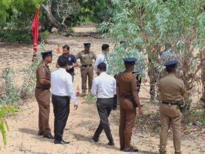 குருக்கள் மடத்தில் உள்ள மனிதப் புதைகுழி அமைந்துள்ள இடத்தை நேரில் சென்று நீதிபதி உள்ளிட்ட உயர் அதிகாரிகள் பார்வையிட்டனர்.