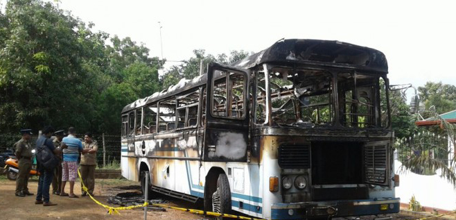 கொழும்பு – திருகோணமலை சேவையில் ஈடுபடும் குறித்த பேருந்தானது உரிமையாளரது வீட்டில் நிறுத்தி வைக்கப்பட்டிருந்தது.