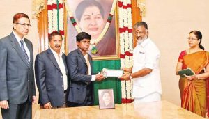 செப்டம்பர் மாதம் பிரேசில் நாட்டின் ரியோ டி ஜெனீரோ நகரில் நடந்த பாரா ஒலிம்பிக் போட்டியில் உயரம் தாண்டுதலில் சேலம் மாவட்டத்தை சேர்ந்த த.மாரியப்பன் தங்கப்பதக்கம் வென்று சாதனை படைத்தார். அவருக்கு மறைந்த முதல்-அமைச்சர் ஜெயலலிதா வாழ்த்து தெரிவித்துக் கொண்டதோடு, தமிழக அரசின் சார்பில் ரூ.2 கோடி ரூபாய் உயரிய ஊக்கத்தொகை வழங்கப்படும் என்று அறிவித்து இருந்தார்.