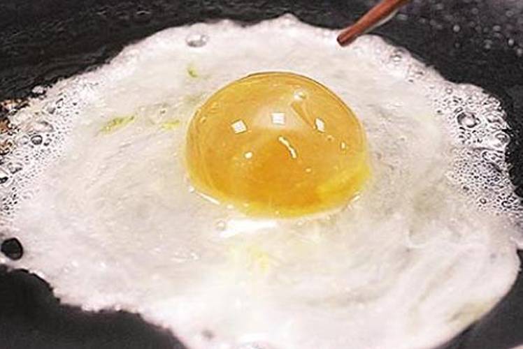 ஆப் பாயில் போடும் போது போலி முட்டையின் அழகு தெரிய வருகிறது. மஞ்சள் கரு கொஞ்சம்கூட சிதறாமல் பந்துபோல் முழுவதாக நிமிர்ந்து நிற்கிறது. மேலும் வெள்ளைக்கரு பரவும்போது நுரையும் அதிகமாக எழுகிறது.