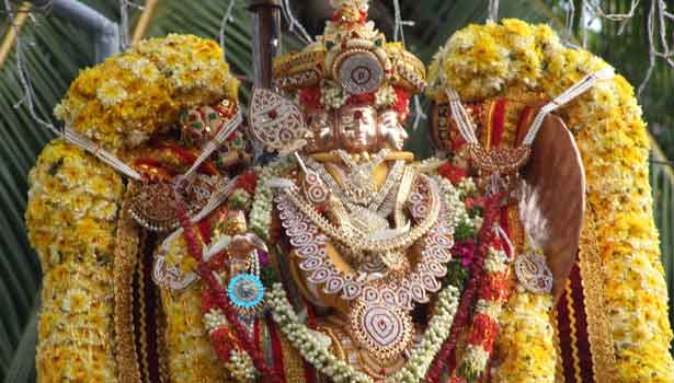 அறுபடைவீடுகளில் ஒன்றான திருச்செந்தூரில், மாசி, ஆவணி மாத திருவிழாவின் போது மாலையில் இவர் சிவப்பு நிற வஸ்திரம் சாத்தி சிவபெருமானாகவும், மறுநாள் (8-ம் திருநாள்)காலையில் வெண்ணிற ஆடையில் பிரம்மாவின் அம்சமாகவும் அருள்கிறார். மதியவேளையில் பச்சைபட்டு சாத்தி பெருமாள் அம்சத்தில் பக்தர்களுக்கு அருளாசி வழங்குகிறார்.