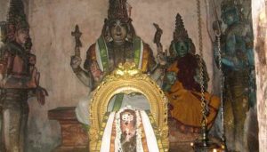 இந்த கோவில் மூலவர் சுயம்புலிங்கமாய் தாமிரநிறத்தில் காட்சியளிக்கிறார். இவர் தினமும் ஐந்து நிறங்களில் தோன்றுவதால் பஞ்சவர்ணேசுவரர் என்றும் அமர்நீதியார், அப்பர் ஆகியோருக்கு அருள்புரிந்ததால் ஆண்டார் எனவும், அகத்தியருக்கு தம் திருமணக் கோலத்தை காட்டி அருளியதால் கல்யாணசுந்தரர் எனவும், பேரழகுடன் விளங்குவதால் சுந்தரநாதன், சவுந்தரநாயகர் எனவும் போற்றப்படுகிறார். கருவறையில் சுதை வடிவில் அமர்ந்த நிலையில் கல்யாண கோலத்தில் இறைவனும், இறைவியும் இருக்க, இருபுறமும் திருமாலும், பிரம்மனும் நின்ற திருக்கோலத்தில் உள்ளனர்.