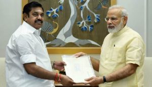 பிரதமர் நரேந்திர மோடியை இன்று சந்தித்த போது முதல்-அமைச்சர் எடப்பாடி பழனிசாமி மனு ஒன்றை அளித்தார்.