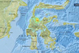 இந்தோனேஷியாவின் தென்கிழக்கே சுலேவாசிய தீவில் உள்ள பாலு தீவு பகுதியில் கடலுக்கு அடியில் 9 கி.மீ. ஆழத்தில் சக்தி வாய்ந்த நிலநடுக்கம் ஏற்பட்டுள்ளது.