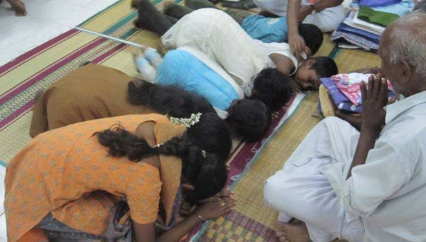 கோவிலில் உள்ள சக்தியை பெற்றுக்கொள்ளும் தன்மை இயல்பாகவே அனைவருக்கும் இருப்பதில்லை. எனவே அதனுடன் நீங்கள் தொடர்பில் இருக்கவேண்டும் என்பதற்காக தரையில் உட்காருவது, உடல் தரையில் படும்படி விழுந்து வணங்குவது ஆகிய வழக்கங்களை ஏற்படுத்தினார்கள். அதுவும் ஆண்கள் என்றால் சட்டையைக் கழற்றிவிட்டு சாஷ்டாங்கமாக தரையில் விழுந்து வணங்கலாம். பெண்கள், ஈர உடையுடன் சாஷ்டாங்கமாக வணங்கவேண்டும் என்று வகுத்தார்கள்.